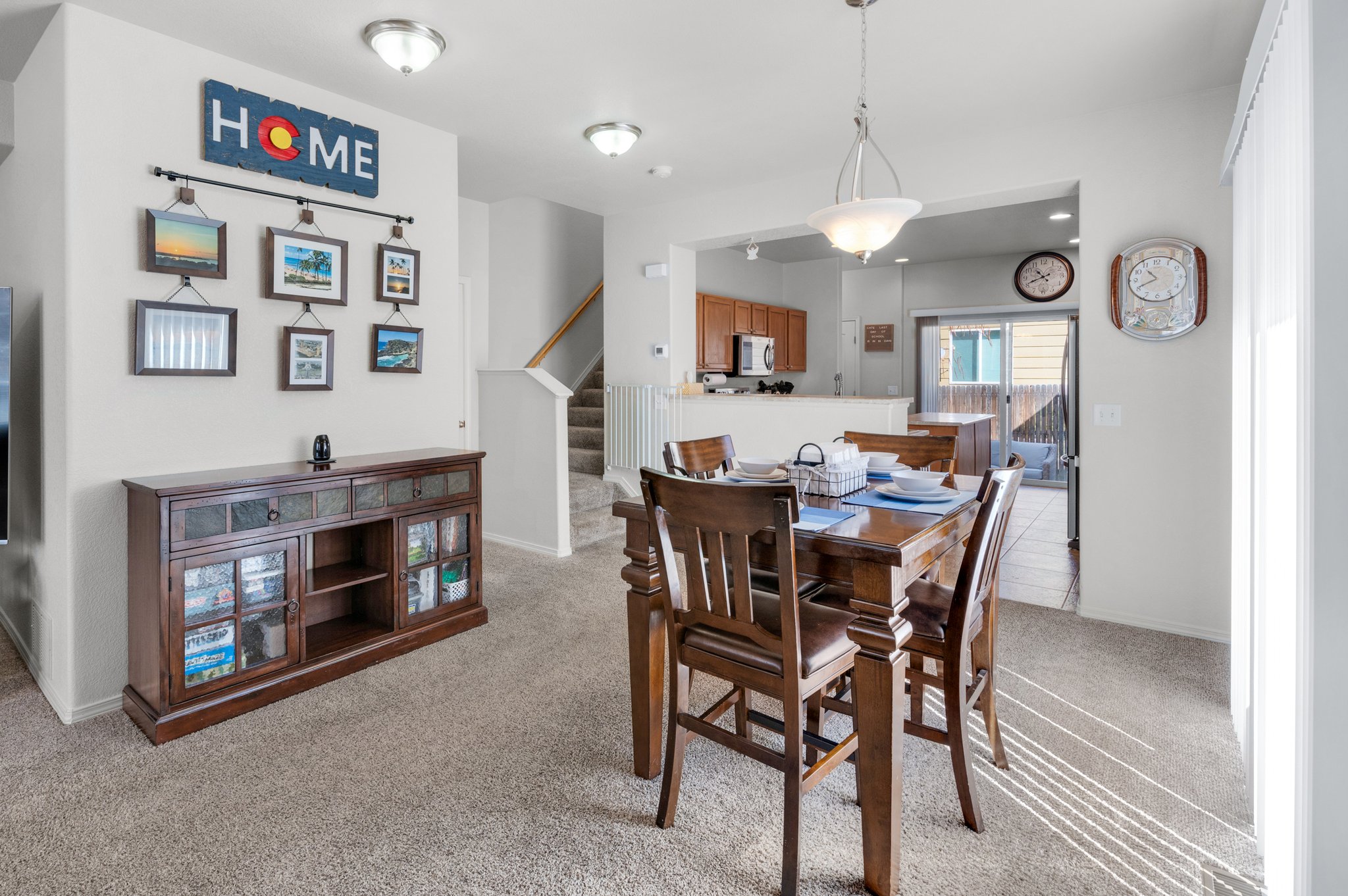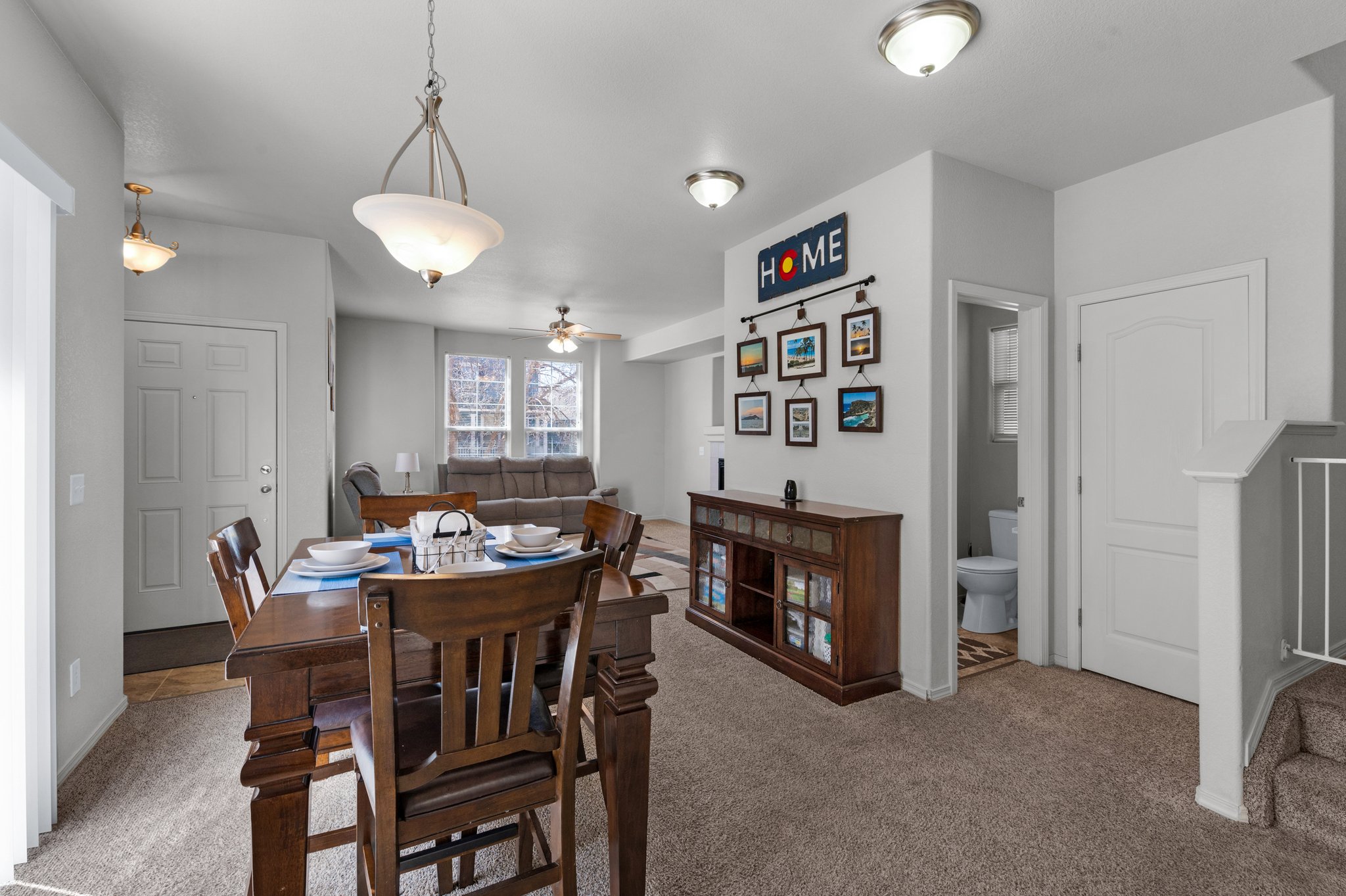 Gorgeous home in popular Greenhaven!  Includes 4 beds, 4 baths, 2 car garage and almost 2,500 square feet of living space!  Spacious kitchen includes an island, large pantry & appliances!  Floor plan couples great for family living and entertaining, as the open main level has a living room, dining room, kitchen, guest bath and walks out to a spacious patio that's prefect for those summer BBQ's!  Master Suite has its own bath & walk in closet!  Finished basement includes a rec area, spacious bedroom & full bath!  Comfort equipped with a fireplace for those chilly cold nights & central AC for those warmer summer days!!   New Water Heater in 2024, Solar added in 2023 and Furnace replaced in 2020!  Stucco exterior and xeriscaped yard are super low maintenance, plus the backyard is fenced and perfect for pets!  Conveniently close to popular powers corridor shopping, great restaraunts, Penrose St. Francis Hospital, Peterson AFB, numerous popular fitness facilities, parks and schools!